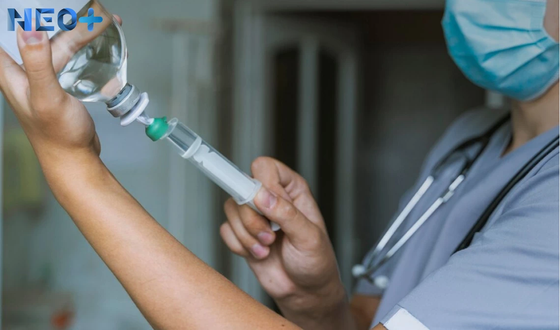 Врач вводит раствор в шприц для укола