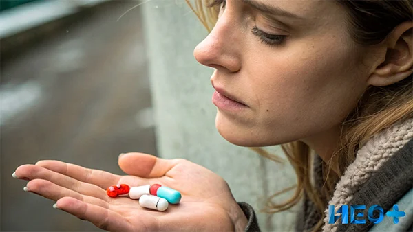 Девушка держит в руке таблетки
